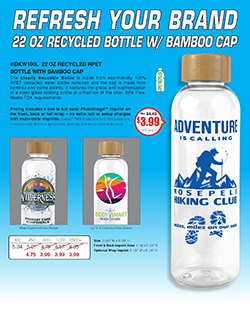 Style #: IDKW100L - 22 oz Recycled RPET Bottle With Bamboo Cap