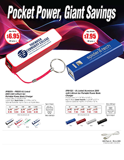 Aluminum alloy case (laser engraved) 2200 mAh Underwriters Laboratories (UL) Listed lithium ionPower Bank Charger recharges your cell and mobile phone battery when it’s running low. Micro USBcharging cable included, requiresyour own charging cable to charge your phone. LED Indcicationlight illiminates while charging. Output is 5 Volts/1 Amp; complete instructions included. Notrecommended for use with tablets. Available with Full Color Imprint. UL File #MH61176,