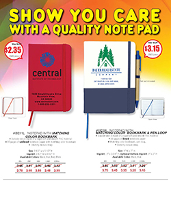 • Price Includes: One color imprint on white or colored section of front of notebook, please specify. Maximum 2 Color Imprint per Location. Imprint on Pen is not available.